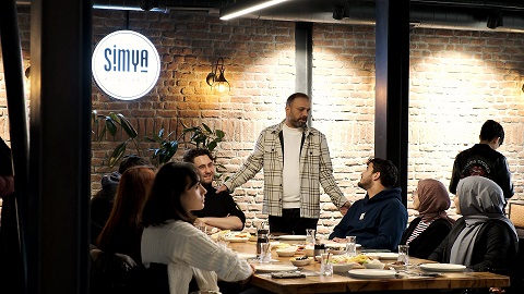 Toplantı salonu, ortak çalışma ve sohbet alanı, teras ve bahçe gibi birçok bölüme sahip olan Simya Kitap Kafe, imza günü, söyleşi, şirket toplantısı, doğum günü ve benzeri kutlama organizasyonlarıyla misafirlerini ağırlamaktadır.